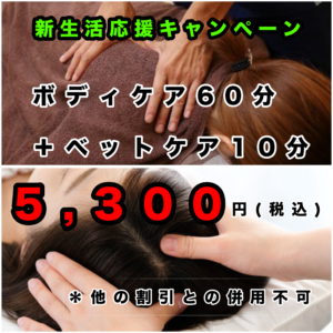 2つ目は『ボディケア60分➕ヘッドケア10分 5,300円(税込)』です。